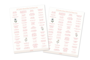 Sometimes, all that noise plants doubts about our place in this world. Our experiences and disappointments drown out what God says about our identity and purpose. Friend, we believe there’s no better way to counter the doom and overwhelm of this world than meditating on who God says we are! So we’ve created this handy list of 50 Truths About Who God Says I Am to help you do just that!
